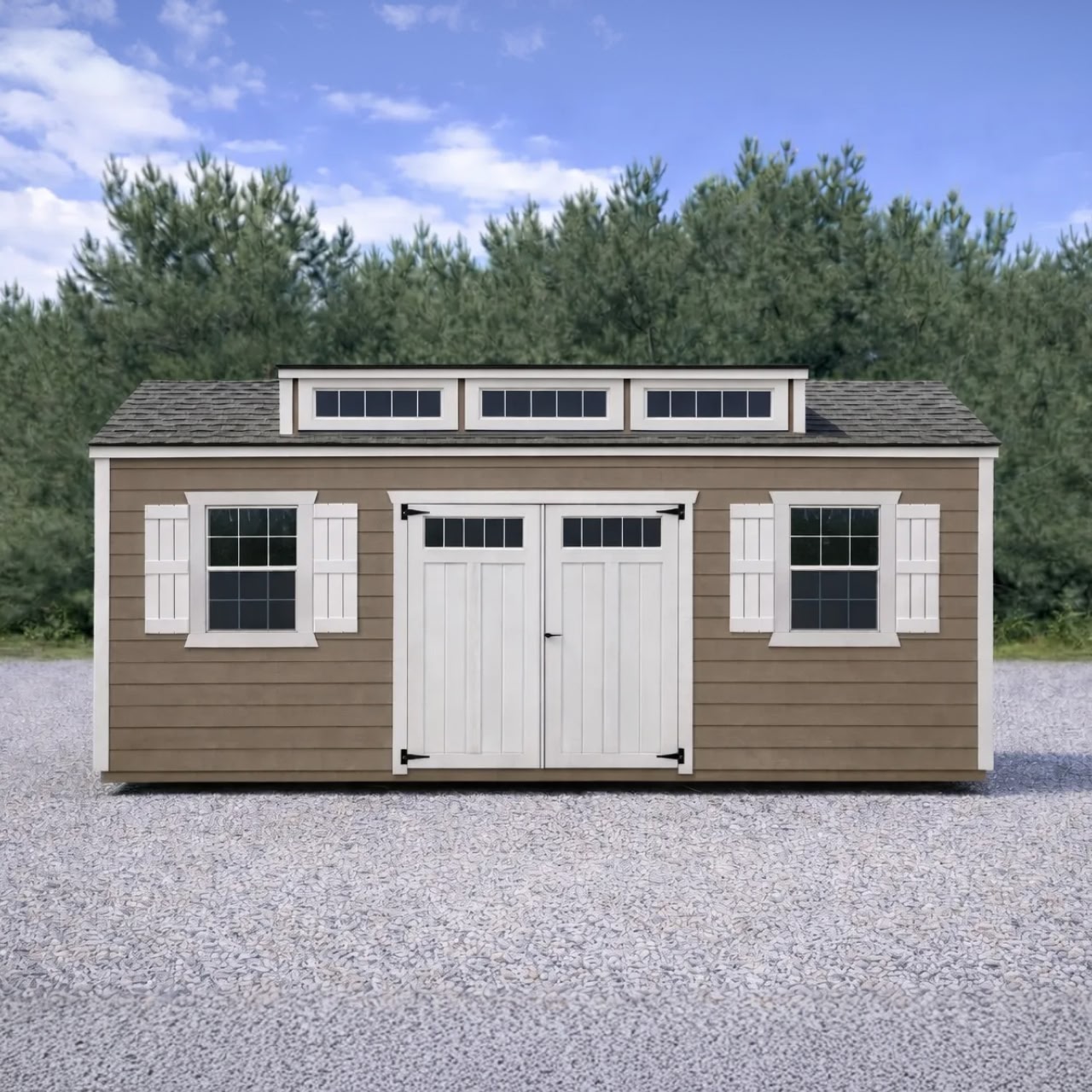 Two options to choose from to immediately bring additional light and curb appeal to your Utility shed. Dormers are not available for Lofts.