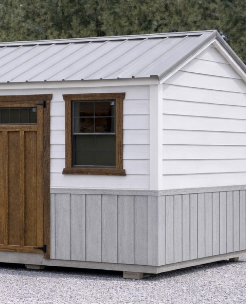 Our LP Smartside wood sheds come standard with the option to have a different color for your siding and trim.