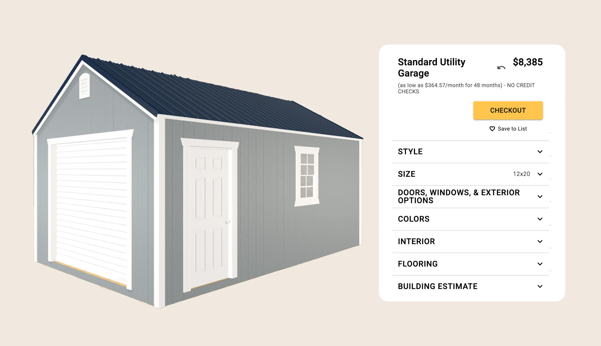 Get exactly what you need - from porch styles, roof and dormer options, door upgrades, extra windows, colors, and interior upgrades like electric packages.