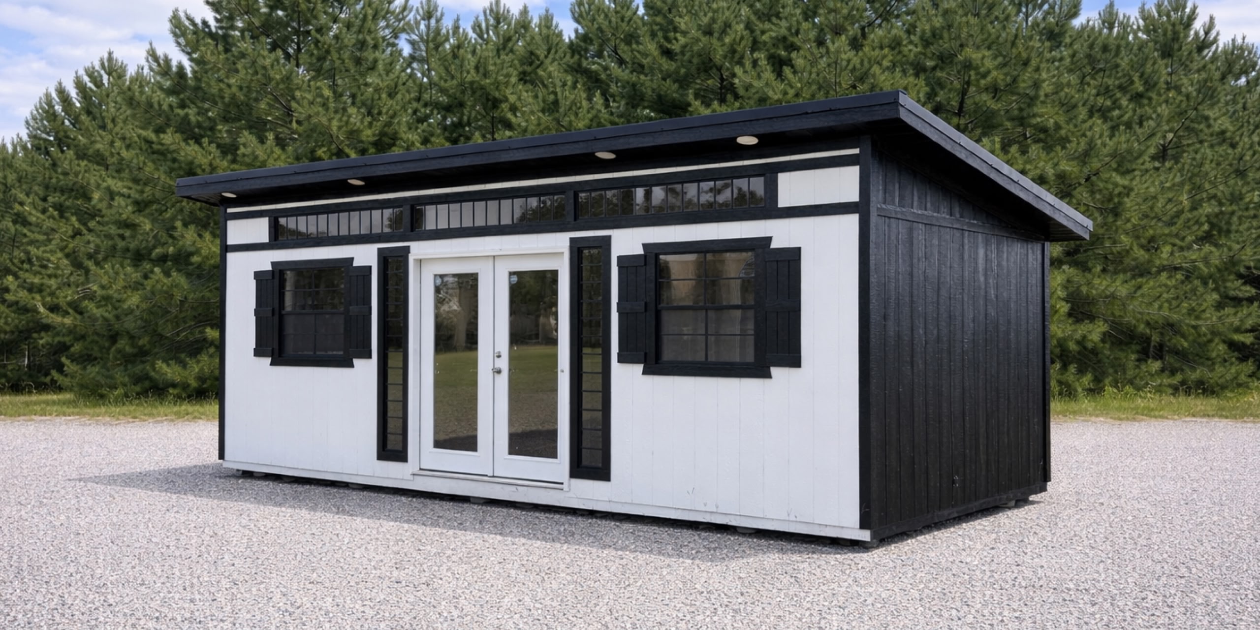 Our Signature Series is our single slope studio style shed and comes standard with our best build quality. Customization options available to make it your own.