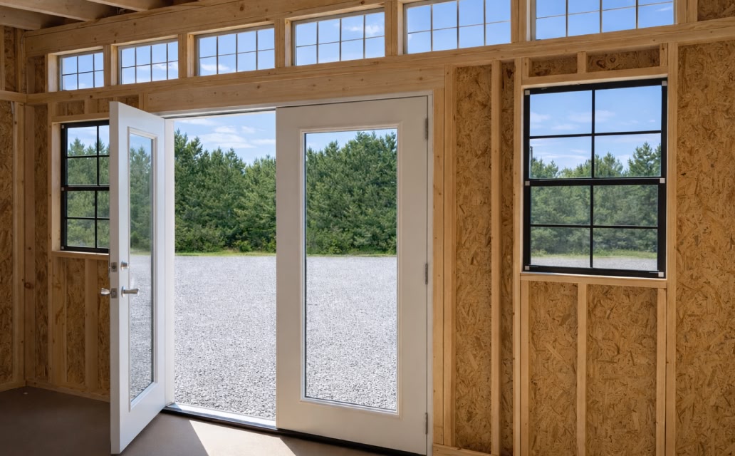 All 10x16, 10x20, & 10x24 buildings come standard with 6' double wood doors.